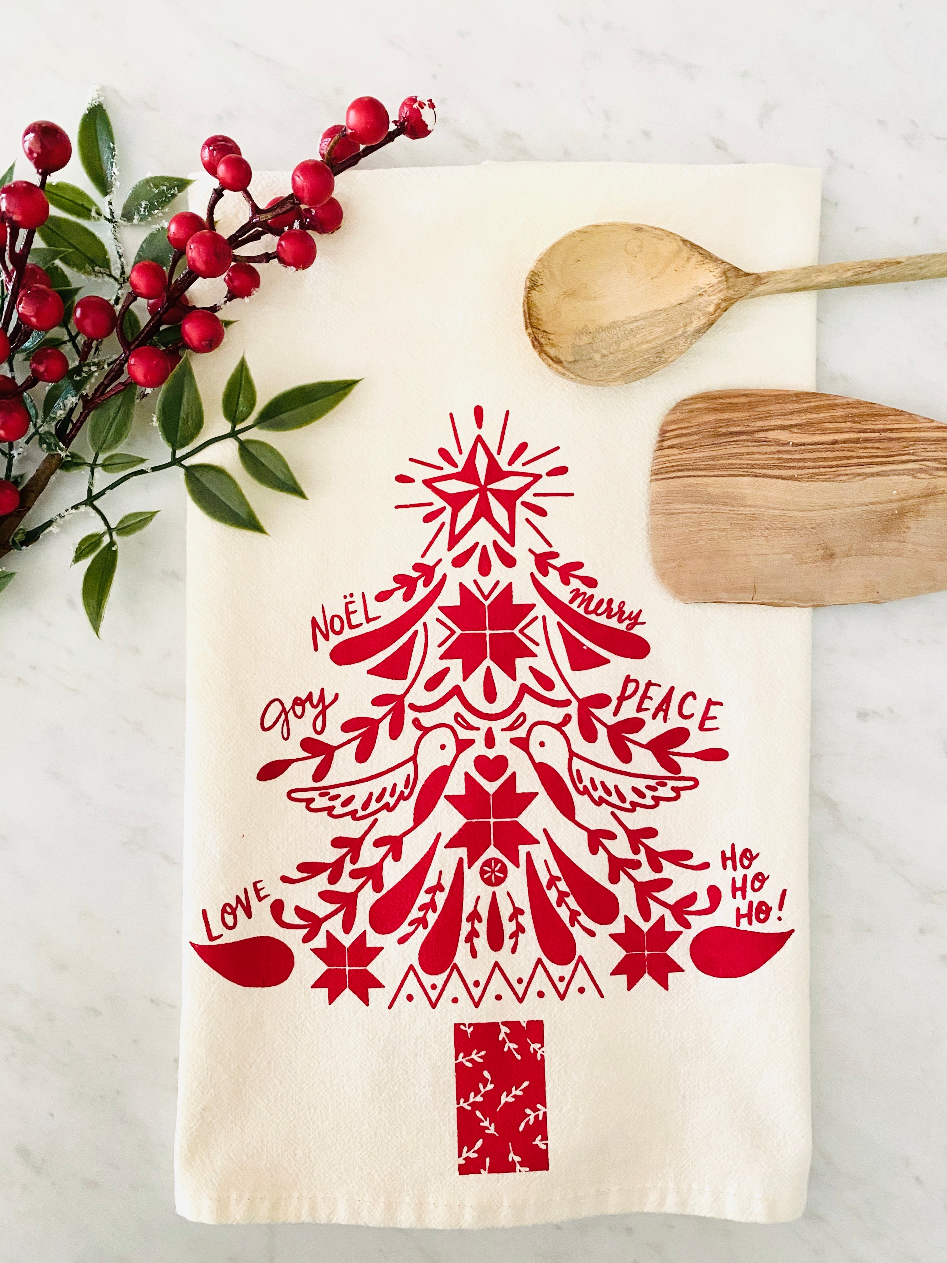 Red Christmas tree Tea Towel