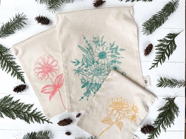 Gorgeous Set of 3 GOTS Cotton Zipper bags.