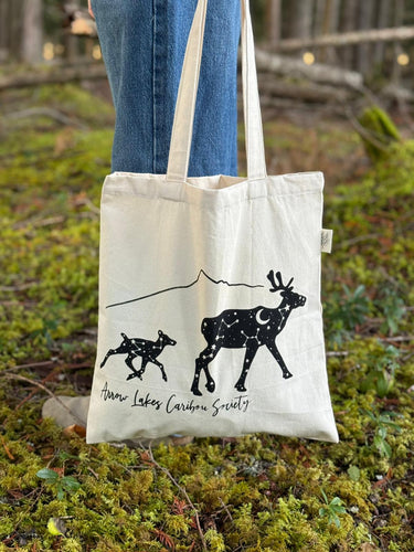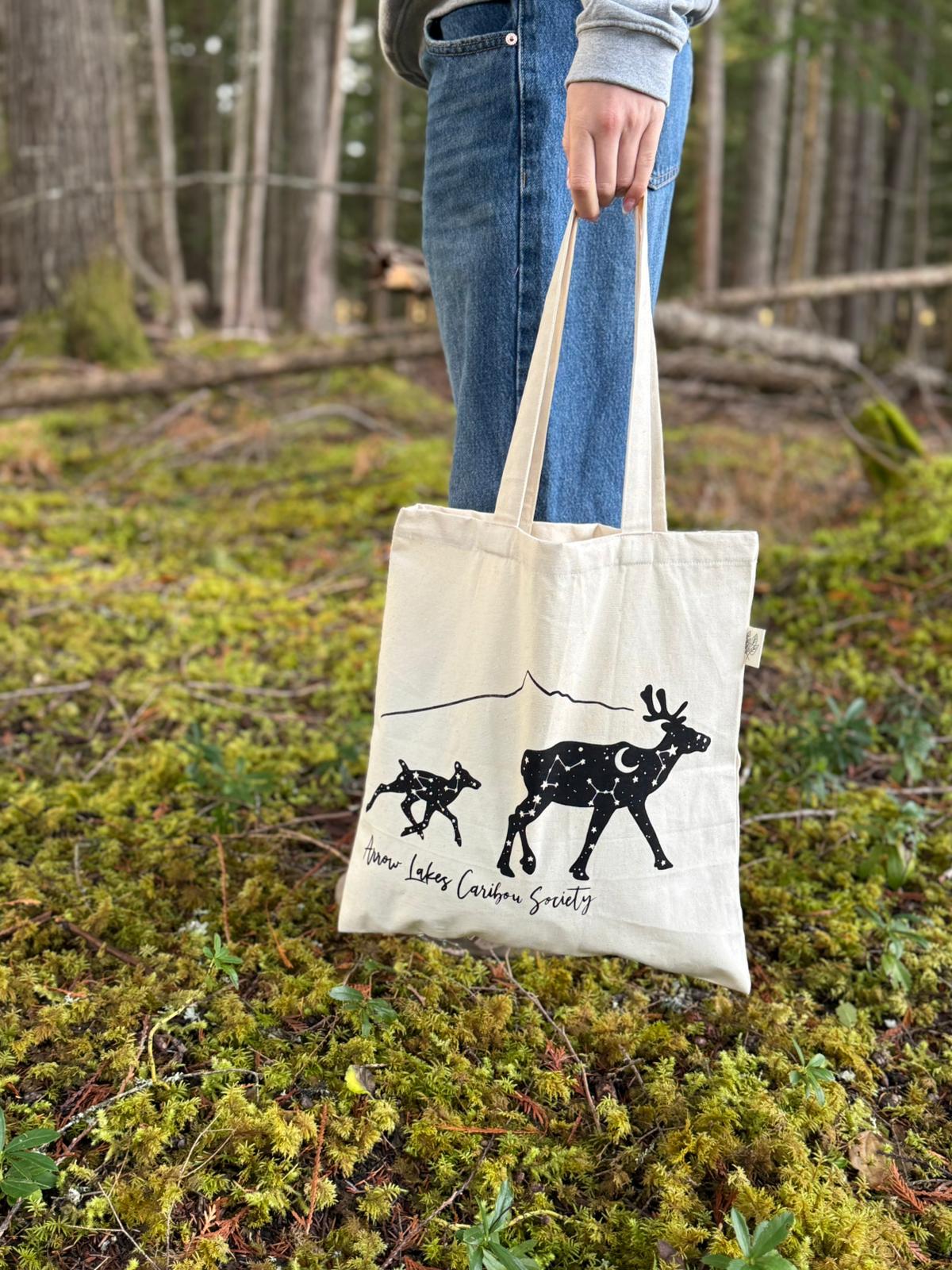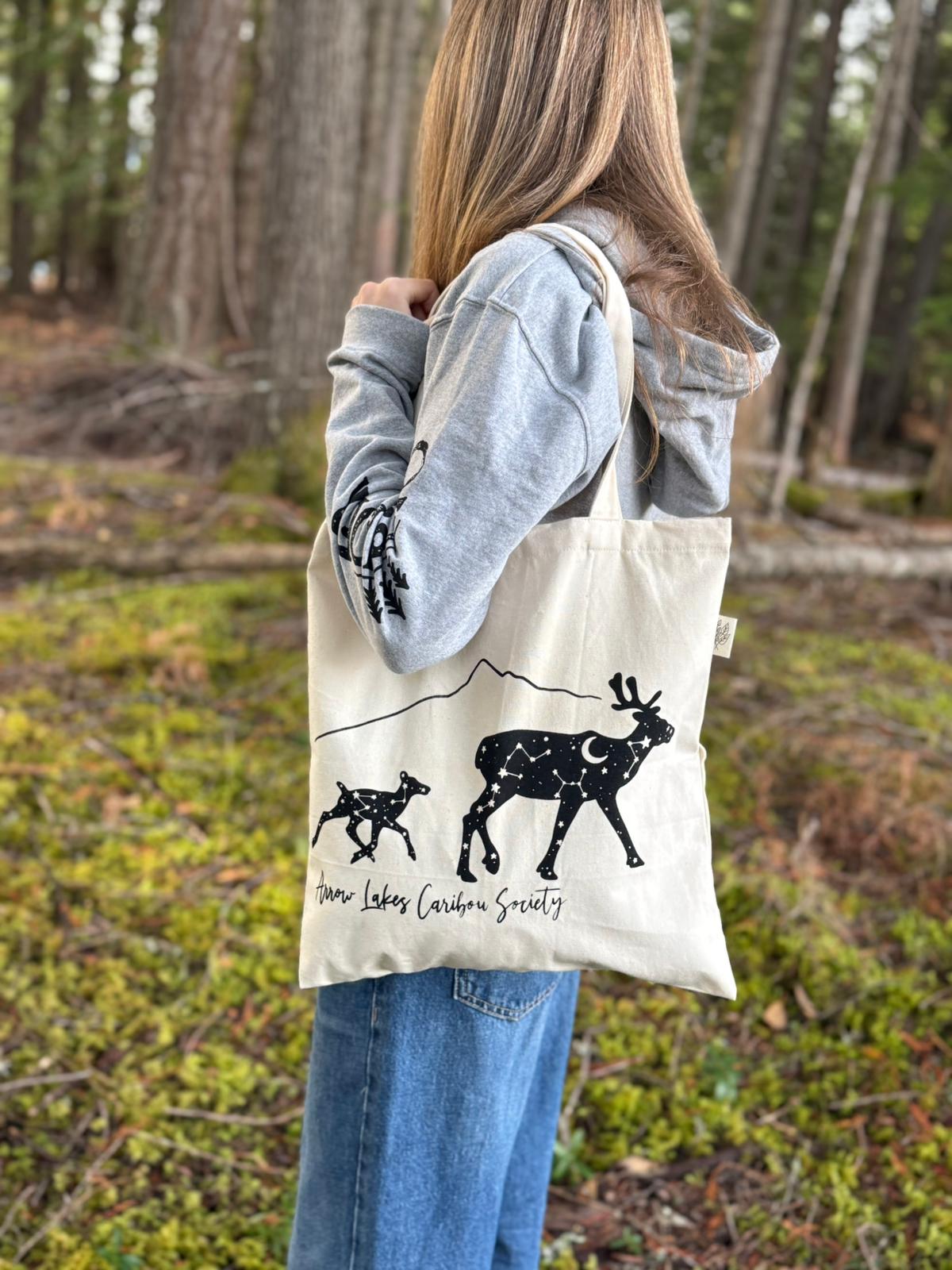 By purchasing this tote bag, proceeds will help maintain the Caribou Maternity Pen Project.