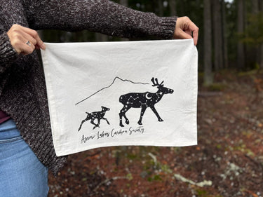 By purchasing this Tea Towel, proceeds will help maintain the Caribou Maternity Pen Project.