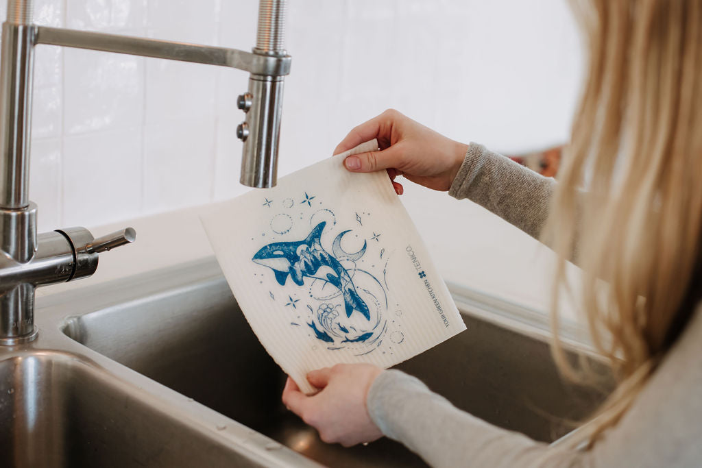 Our sponge cloth is entirely compostable, making it the ideal replacement for conventional dishcloths and paper towels. Not only is it functional, but it's also a sustainable choice—the Ten and Co. Swedish Sponge Cloth stands as the ultimate eco-friendly kitchen accessory.